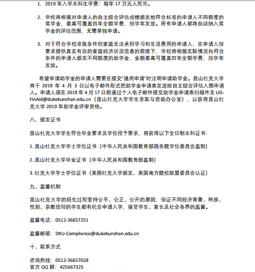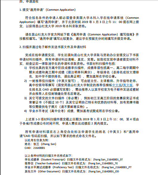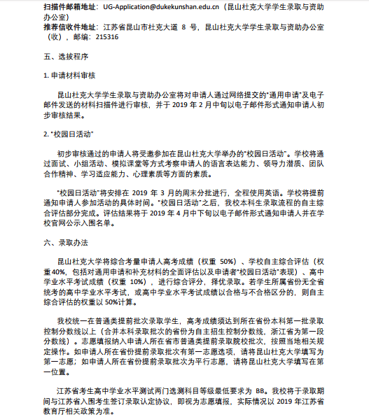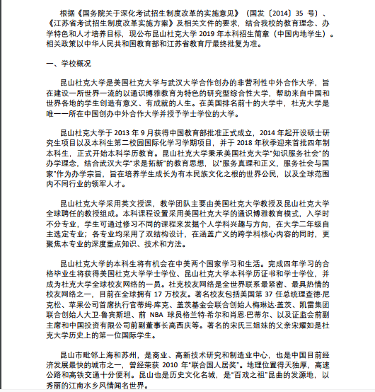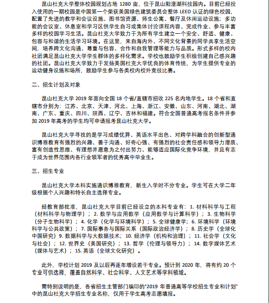 昆山杜克大学2019 年本科招生简章(中国内地学生)